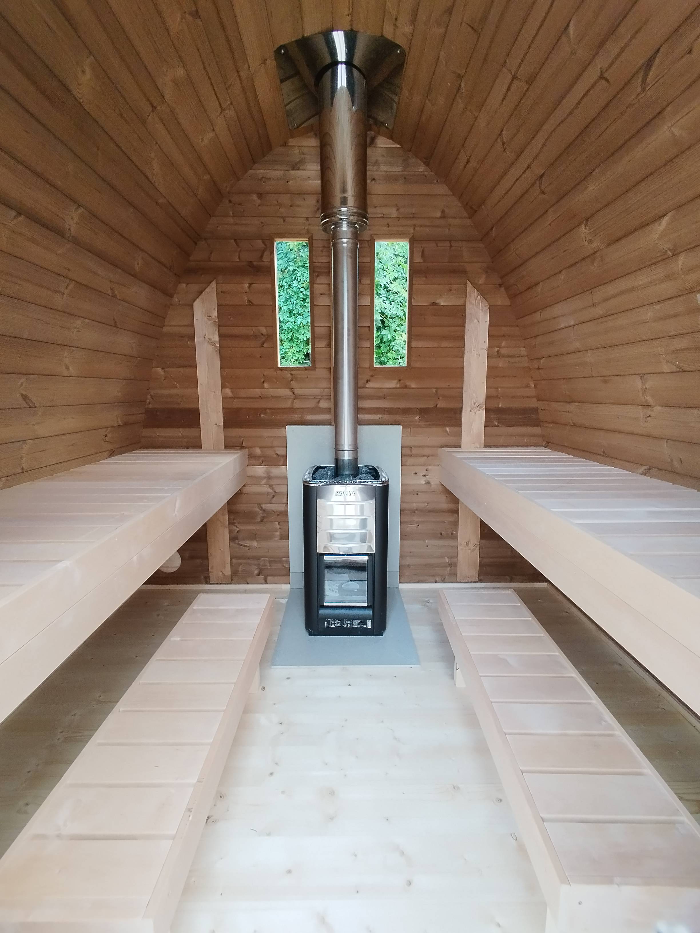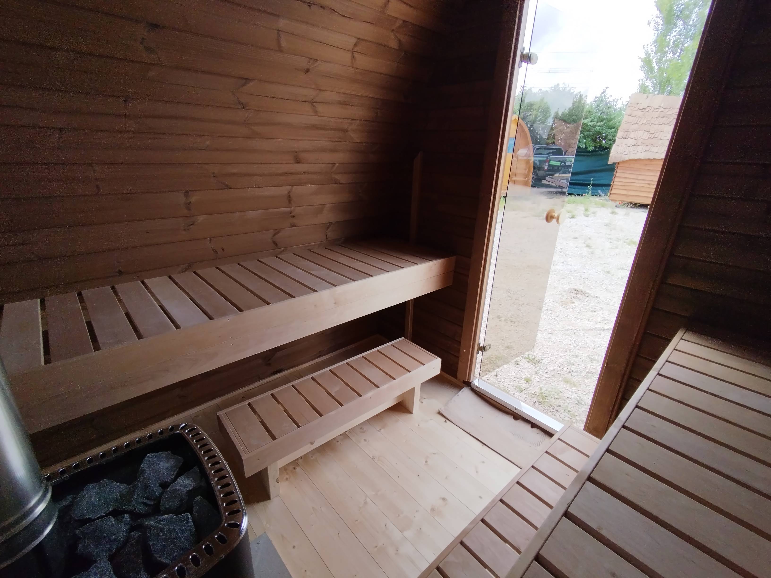 Sauna d’extérieur pour 2 à 4 personnes, en épicéa massif thermo-traité, il est équipé de deux bancs en aulne, de deux marchepieds, d'une porte vitrée fumée et sécurit, de deux petites fenêtres arrière, d'une chaudière au bois avec pierres de lave, et de la protection poêle. Il ne reste plus qu'à vous détendre!