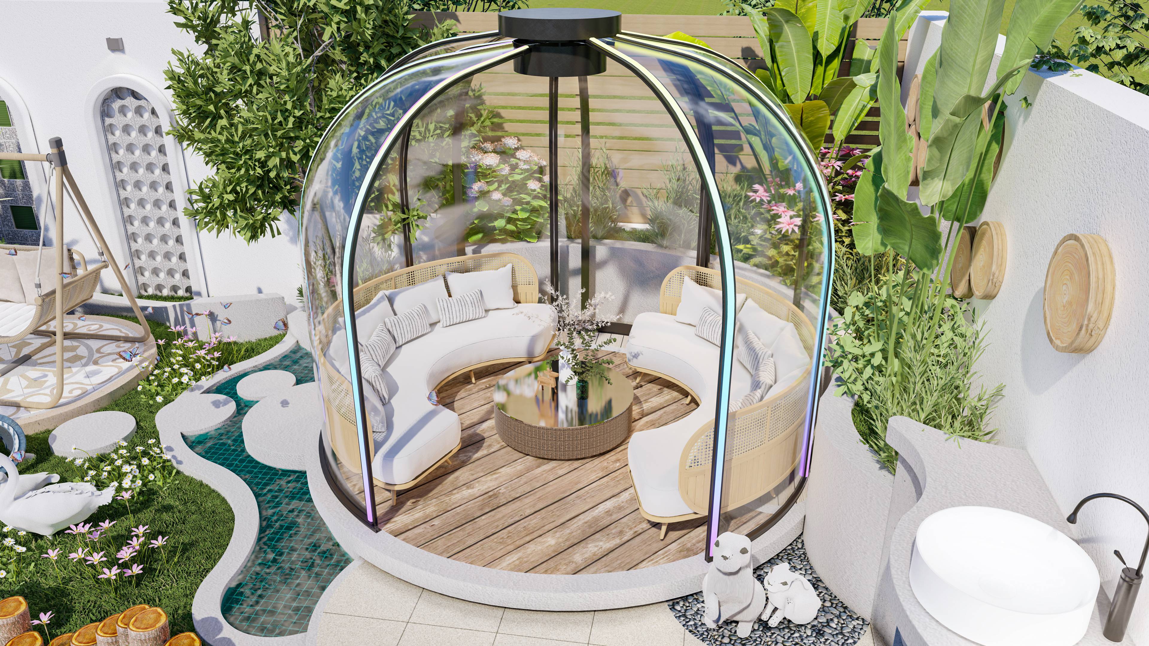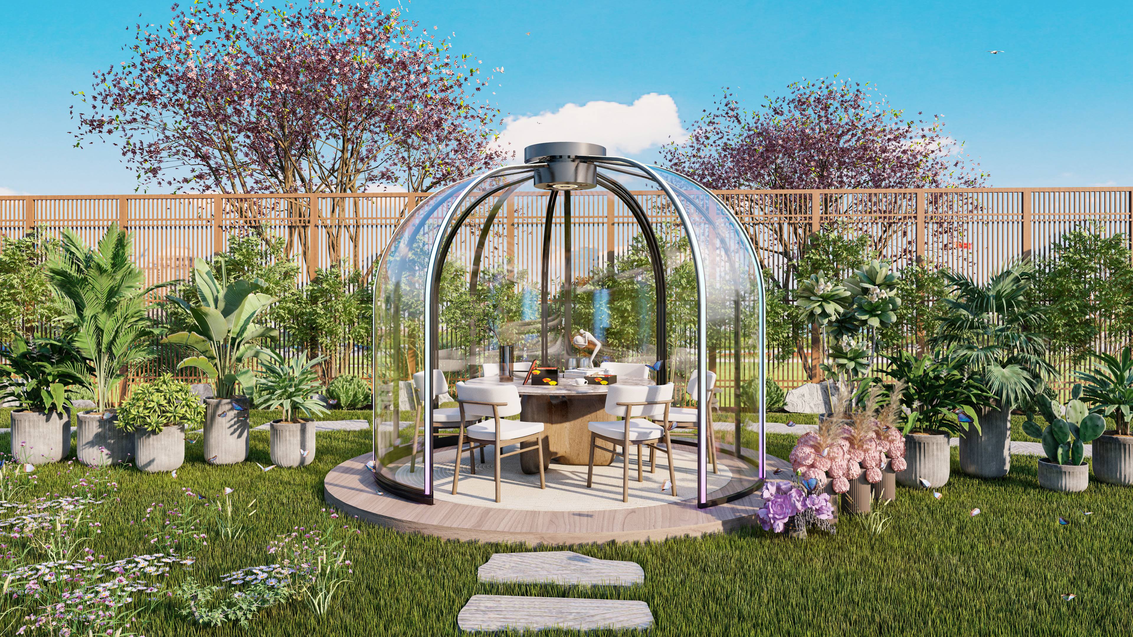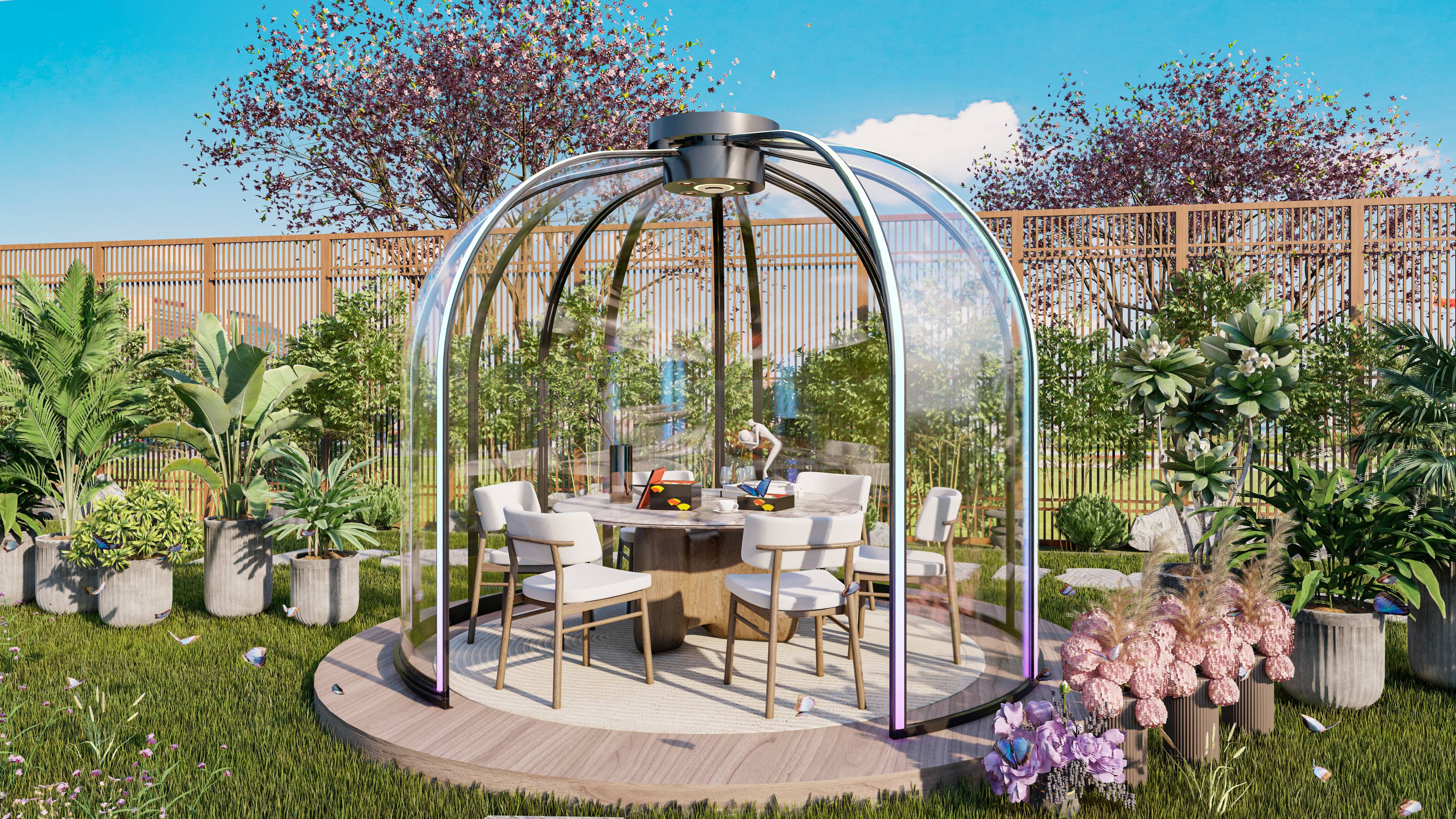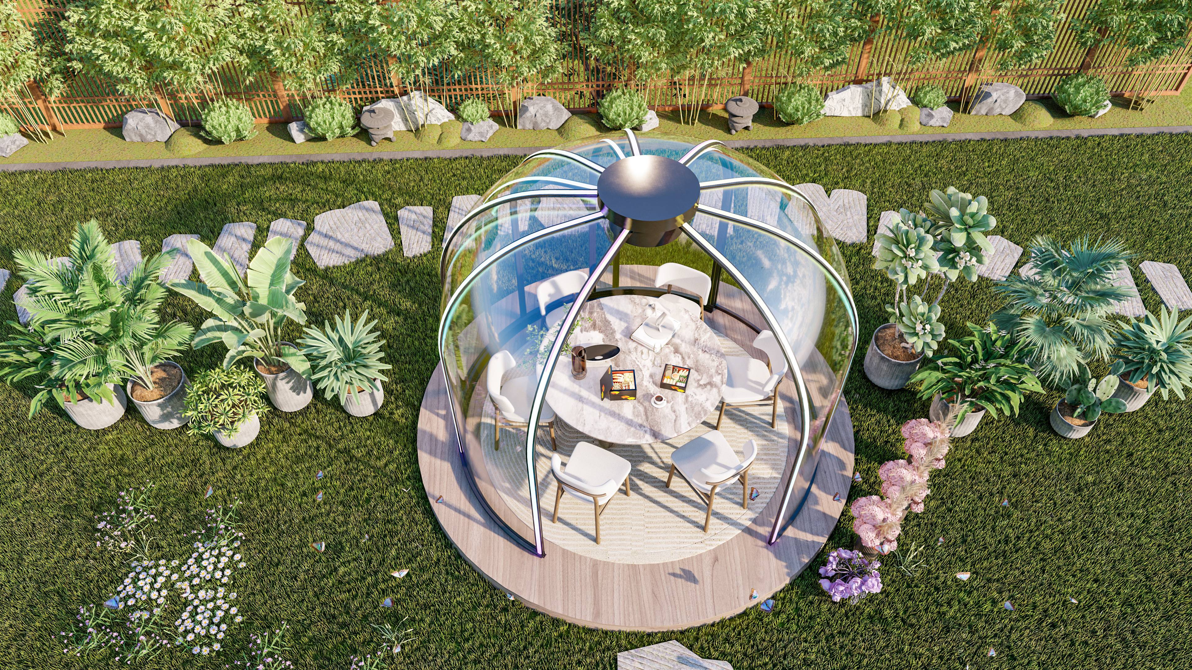Ces bulles transparentes sont composées de plaques polycarbonate transparent complétées par un système perfectionné porte coulissante. Vous pouvez ainsi offrir à vos clients une nuit ou un dîner inoubliable sous les étoiles.