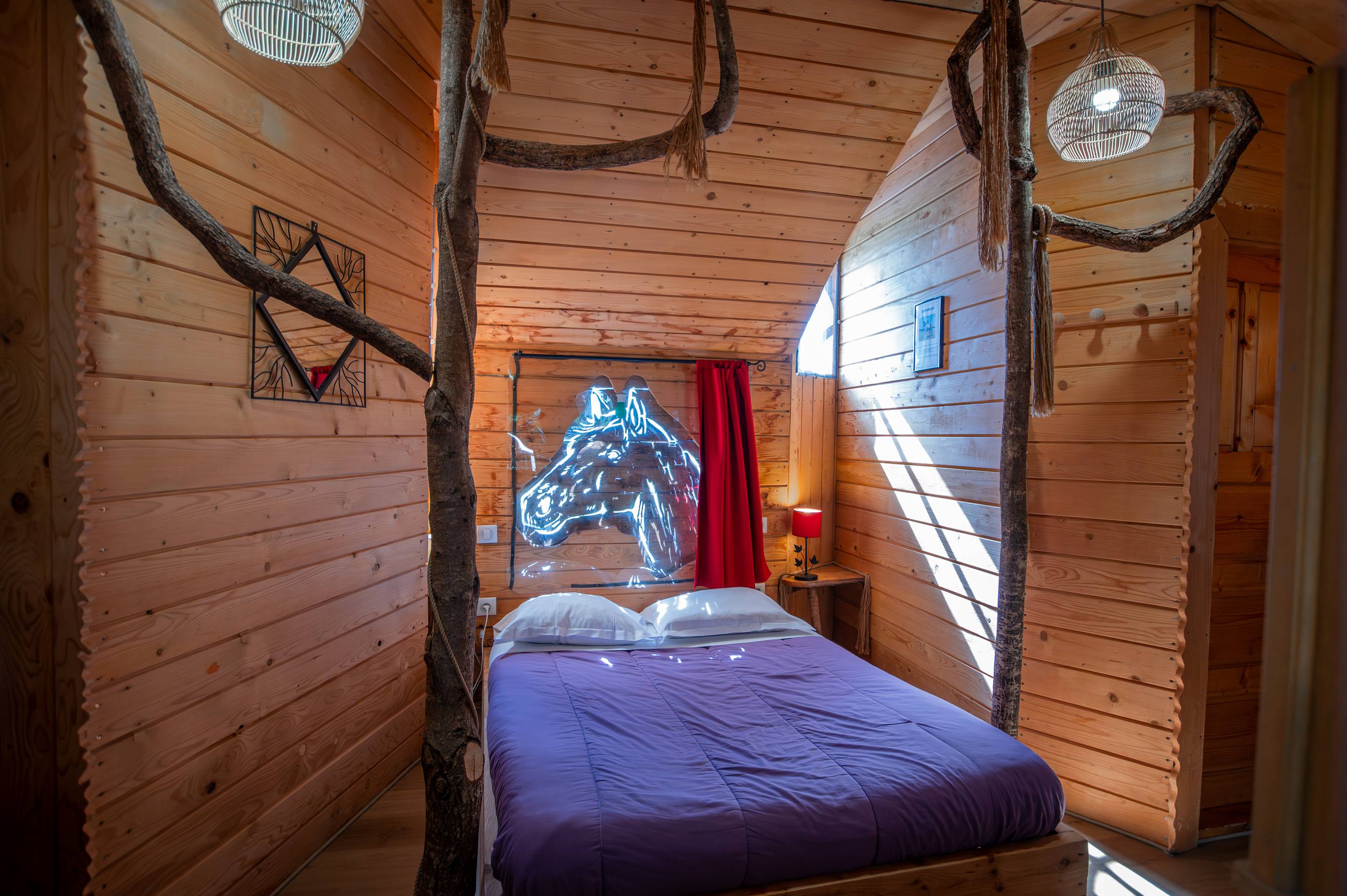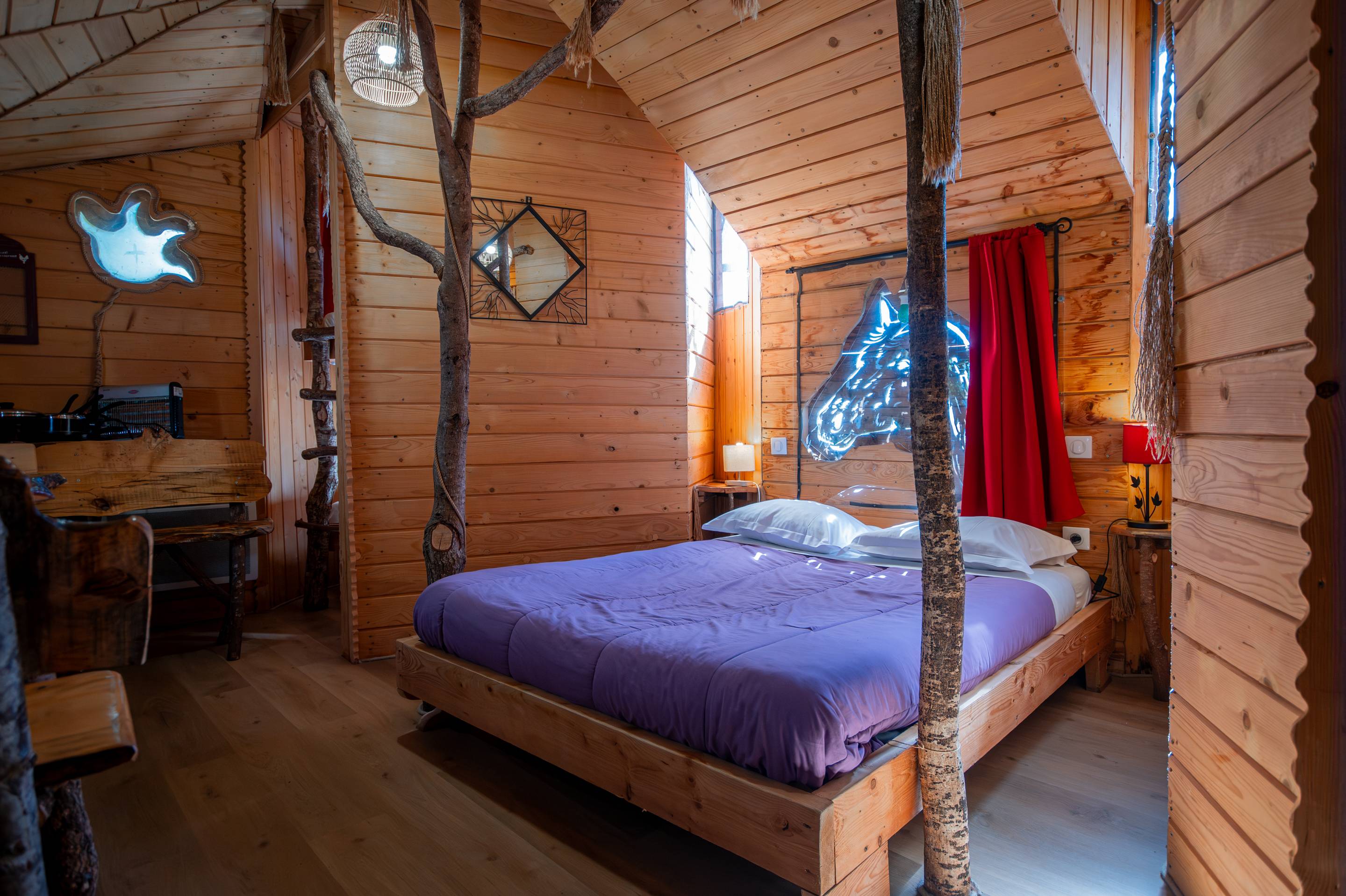 Rêves d’évasion et de nature, la maison dans les arbres est un petit nid douillet niché dans les branches qui vous offre tout le confort de votre maison ! Il suffit de se laisser enchanter par la chaleur de nos cabanes en bois et d’oublier les lois de la pesanteur.