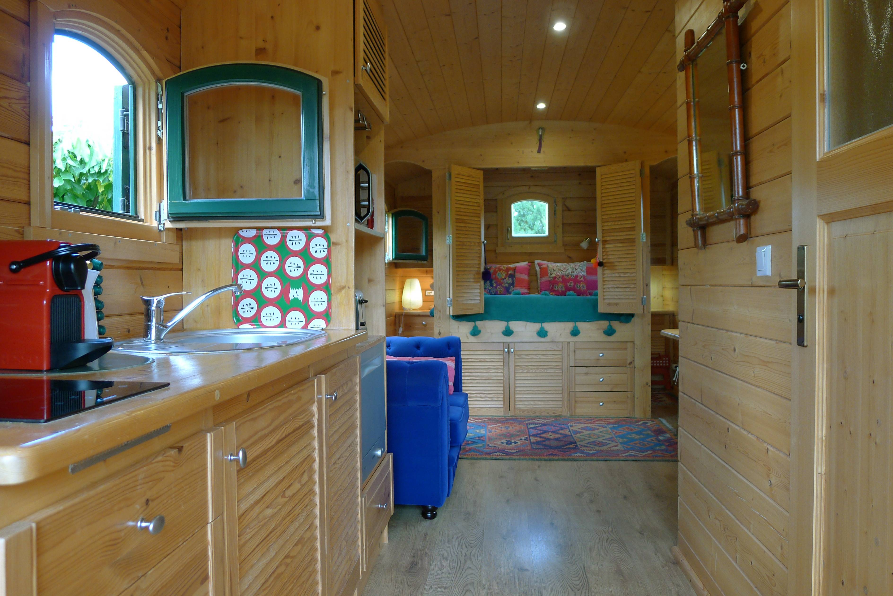 En Drôme Provençale, entre Nyons et Vaison la Romaine, Les Piégonnaises, 2 roulottes de luxe, spacieuses et aménagées avec goût, mêlant confort et l’originalité. Installées sur un terrain arboré de 2 ha elles bénéficient d’un cadre rare (vue dégagée à 360°). Havre de paix entouré de vignes parmi les oliviers et les cerisiers, le calme est absolu, vous pourrez vous détendre en toute intimité.