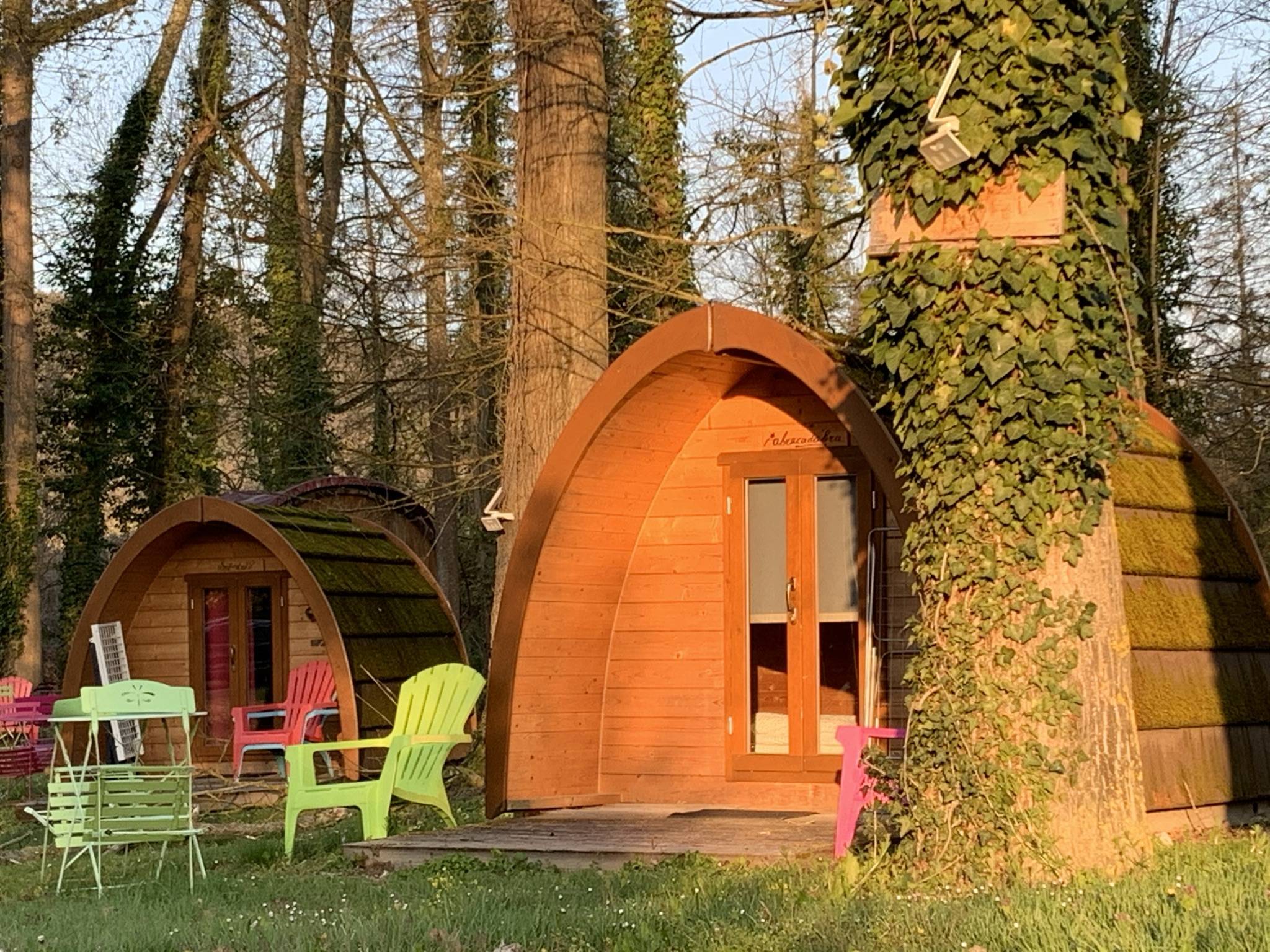 Et enfin nos tentes en bois : la cabane de Troll Bivouac, le pod et le grand pod peuvent accueillir 2 ou 3 personnes. Ils offrent un confort plus rustique (couchage, électricité, chauffage) avec l'avantage d'être véritablement en harmonie avec la nature. Alternative au basique tente de toile, le site s'inscrit dans la nouvelle tendance du « glamping », mot « valise » issu de la contraction de glamour et camping et désignant un hébergement de plein air doté des commodités et d'un certain raffinement.