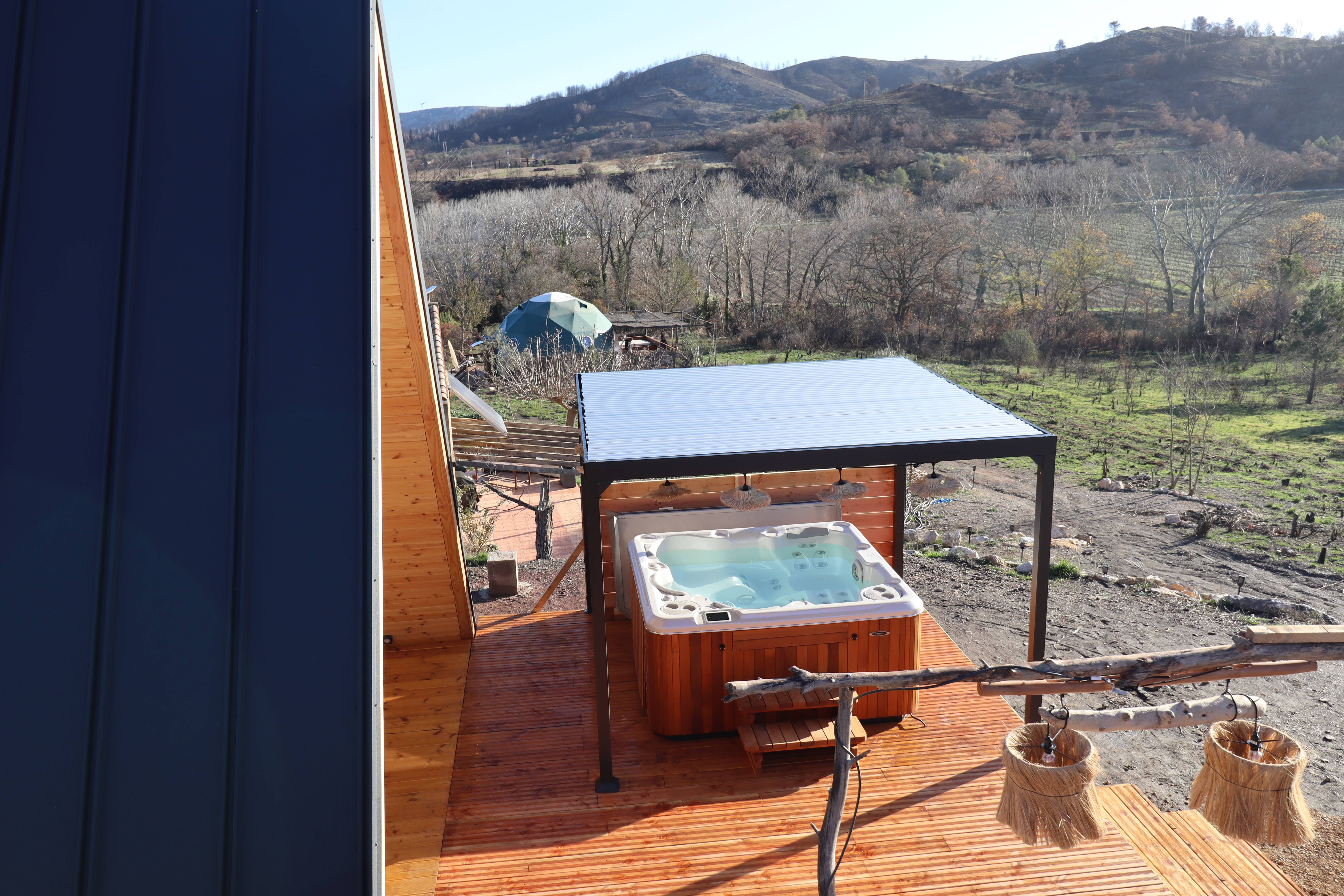 Notre dome Le Love Cocoon a disparu malheureusement lors du plus gros incendie de France dans l’Aude au mois d’Aout 2025, la construction d’une cabane en A « AMORÉ » a pris place : tout aussi belle et toujours avec ce concept unique Insolite & Love Room. Elle sera disponible dés 2026. Sur Glamping-dôme.fr (Bientôt à la réservation mi janvier voir fin janvier. Le meilleur moyen de nous soutenir après cette épreuve est de réserver ???? Calme et vue sur la nature et les montagnes (Corbieres) À proximité des plages 30 min, des grands buffets de Narbonne, du restaurant étoilé (Gilles Goujon), de la réserve Africaine de Sigean et du magnifique marché de noël de Barcares, et des cabanes à huîtres de Leucate. Visite de vignobles, de châteaux nichés au sommet de montages (Peyperthuse, Cité de Carcassonne) et sans oublier les gorges du verdouble pour sauter depuis les rochers dans l’eau limpide et fraîche pendant l’été, balade en bateau…..des activités insolites aussi à retrouver dans notre rubriques activités à faire autour du domaine.