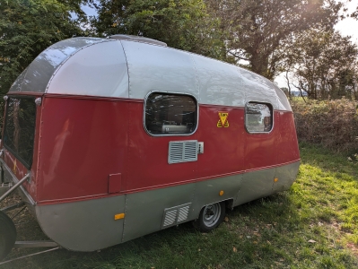 TENTE DANS LES ARBRES AVEC CARAVANE VINTAGE