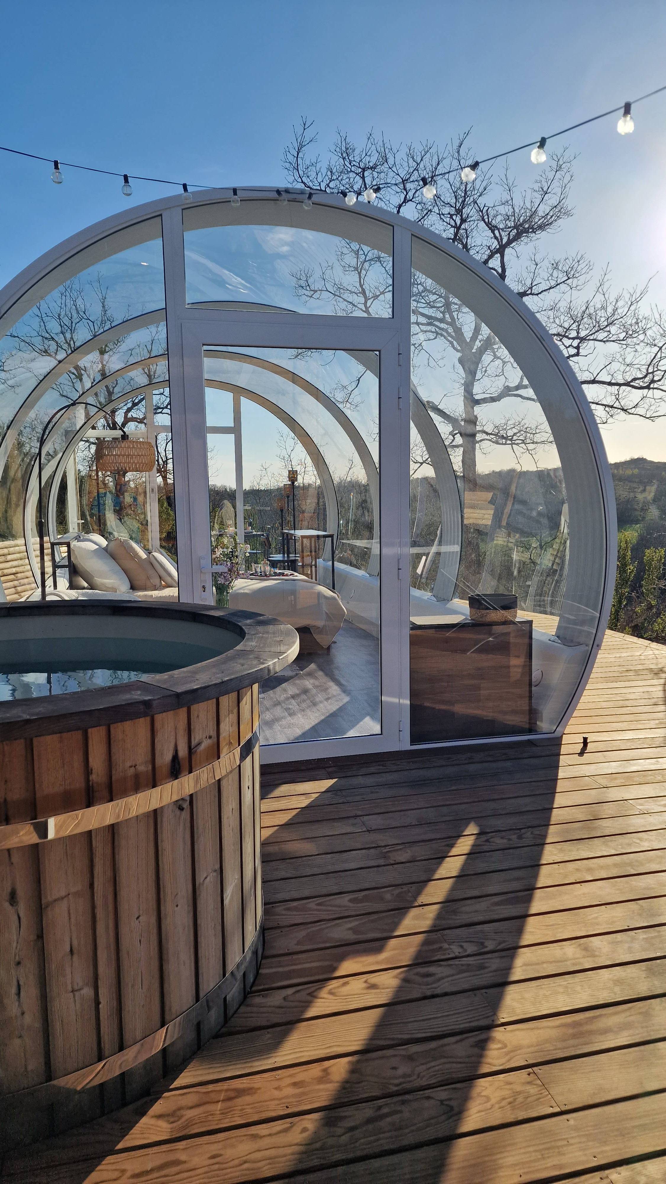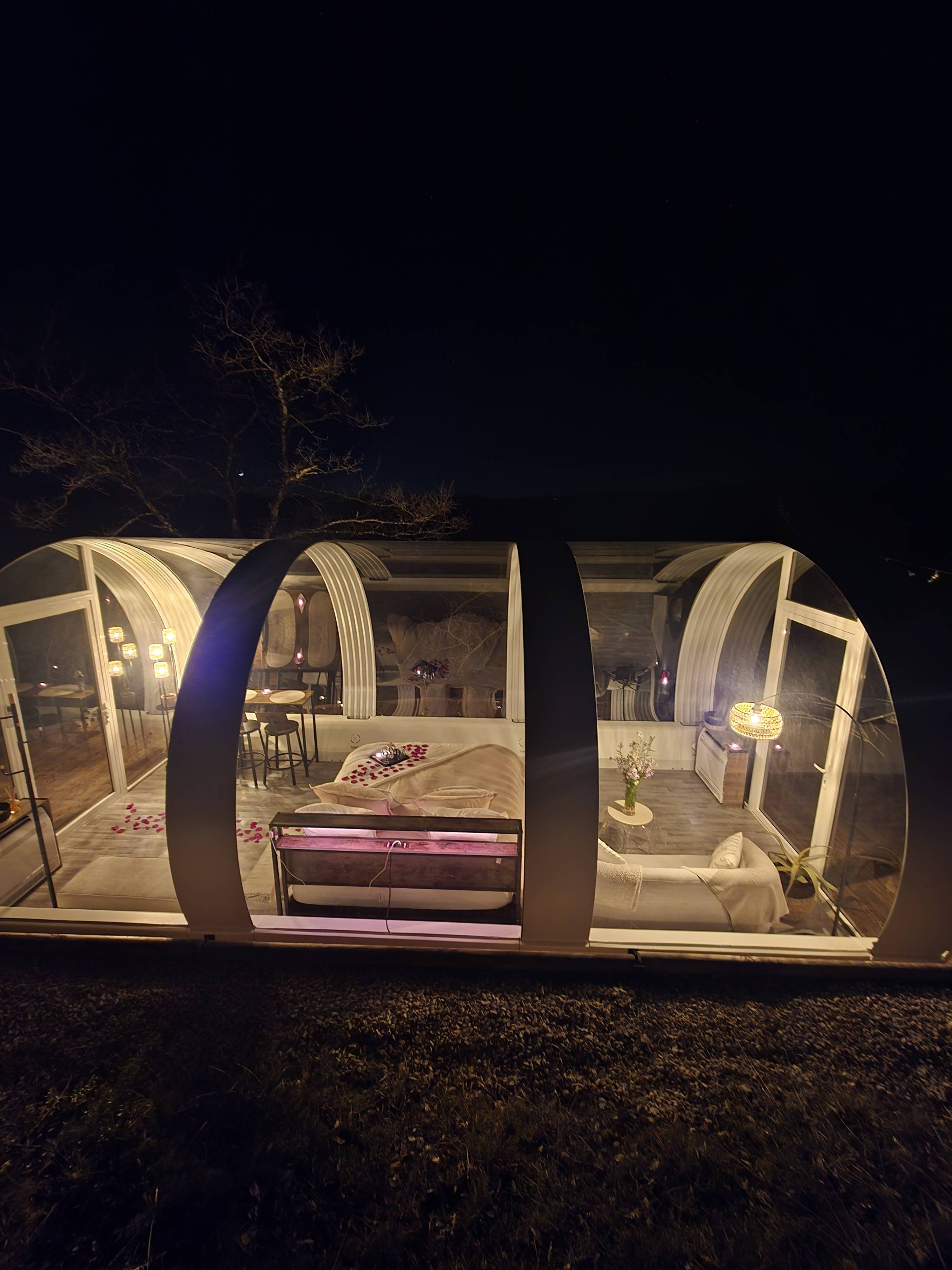 Nichés en pleine nature, nos dômes transparents offrent une expérience d’hébergement insolite et intimiste. Pensés pour les couples et les voyageurs en quête d’évasion, ils invitent à ralentir, à se reconnecter à l’essentiel et à profiter d’un moment hors du temps, entre confort, calme et immersion totale dans le paysage.