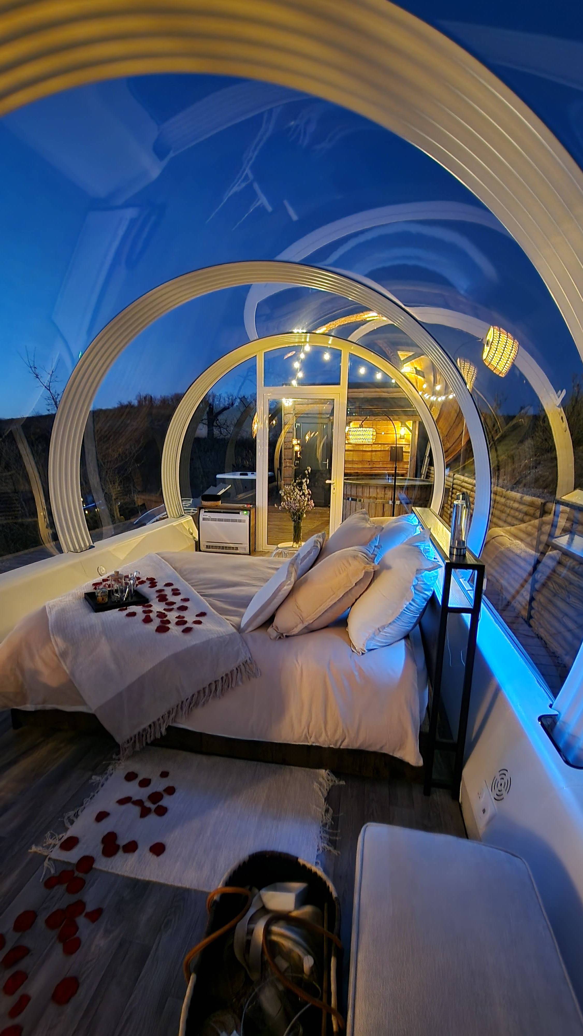 Pensé pour 2 personnes, le Dôme Éden est le cocon parfait pour se retrouver, ralentir et vivre une expérience inoubliable à deux.