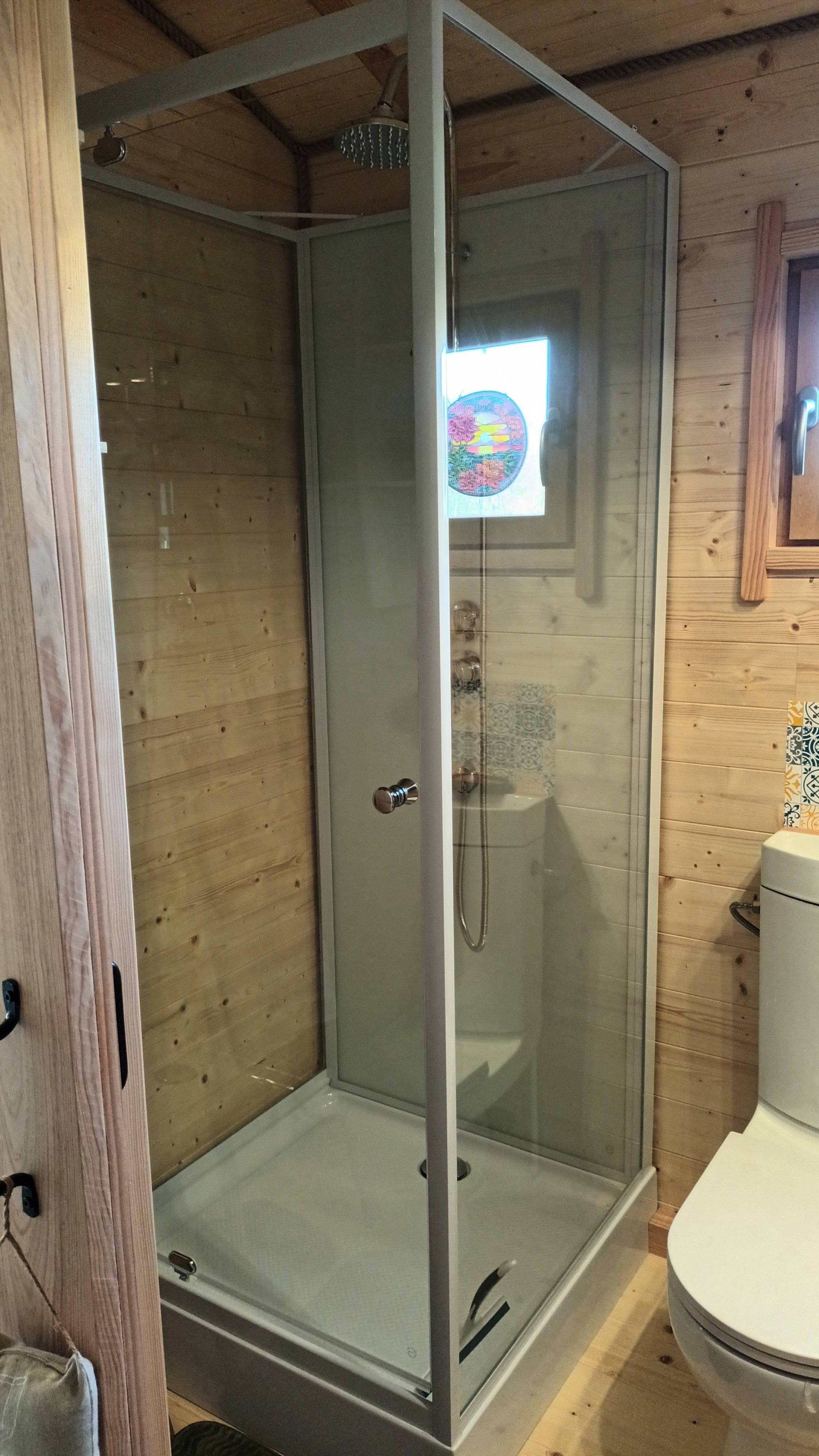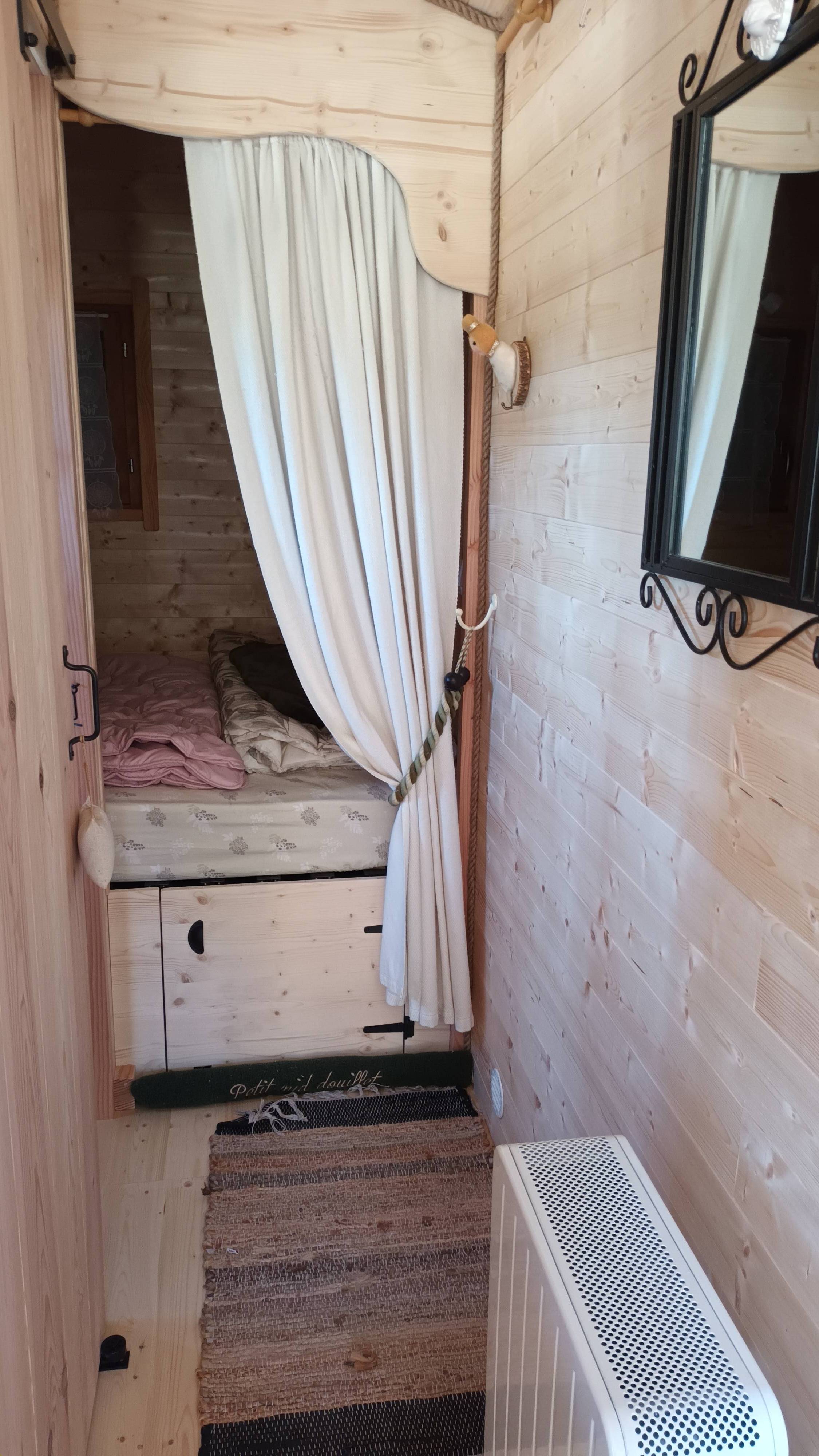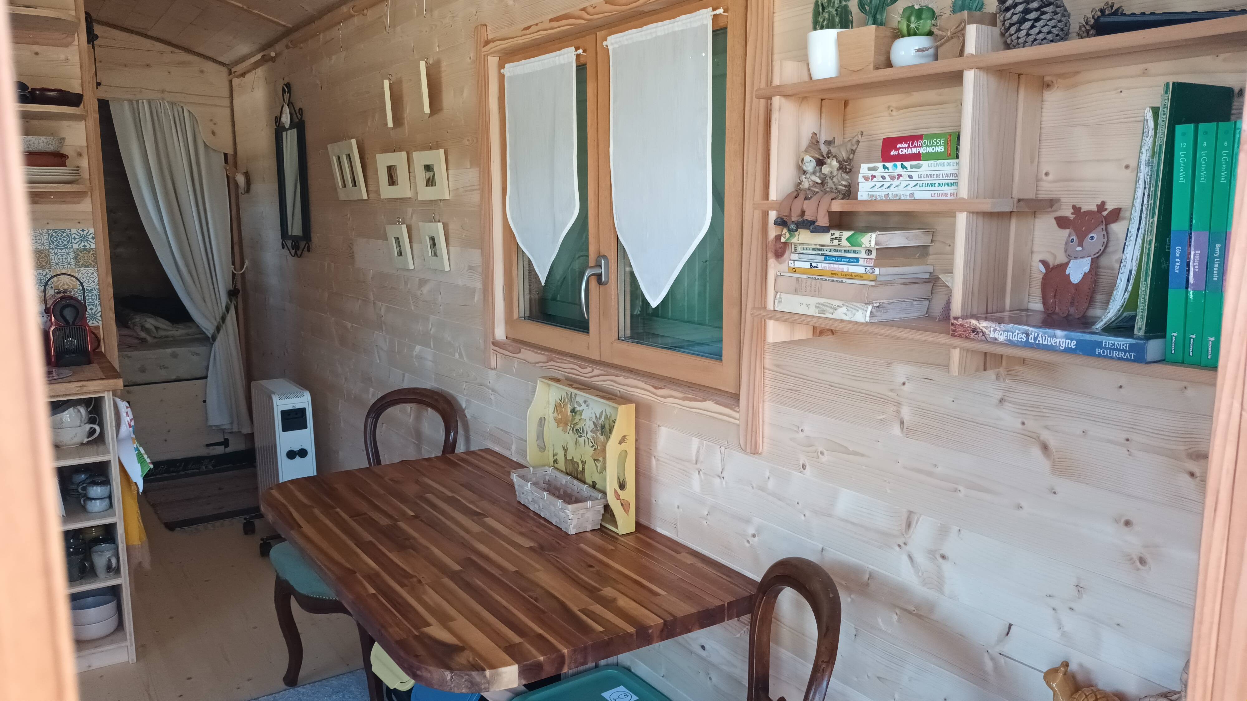 Vous disposerez d'une salle d'eau avec douche, lavabo et WC, un chauffage, un coin cuisine avec un frigo, un micro-ondes, une cafetière, un grille pain, une bouilloire, 2 plaques de cuisson.